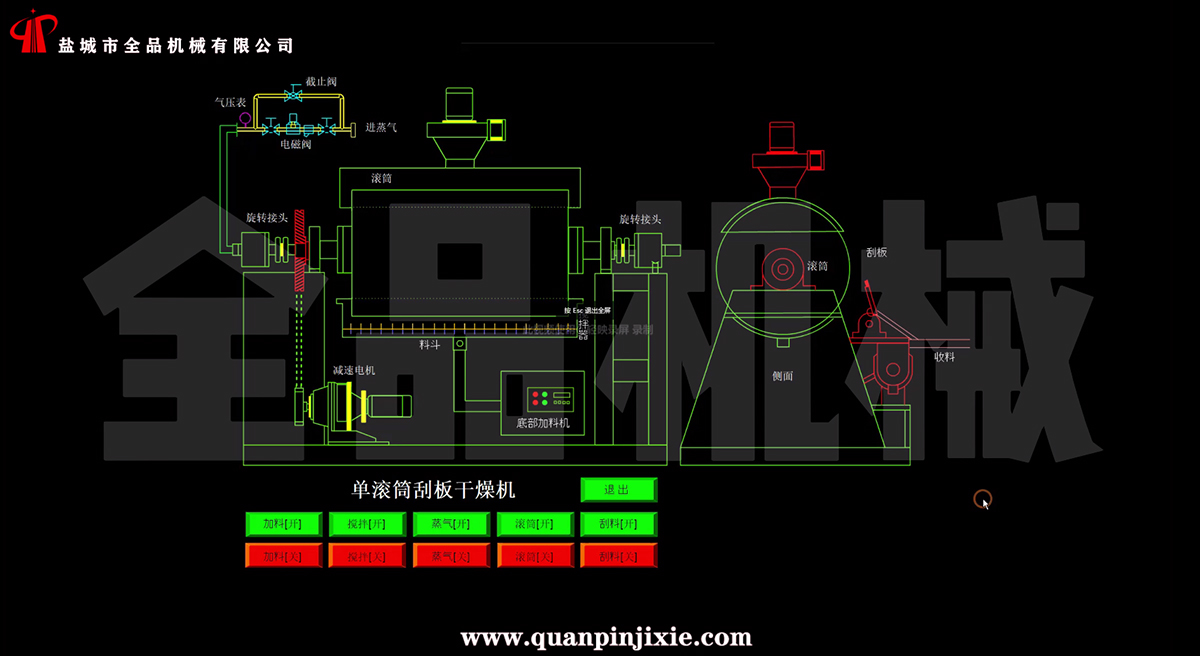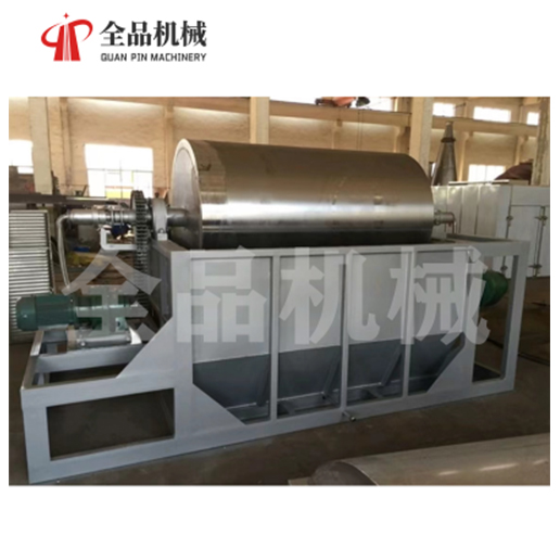 3)啟動電機(jī),主滾筒動運(yùn)轉(zhuǎn)平穩(wěn),溫度升高后加入物料后調(diào)整電機(jī)轉(zhuǎn)速及物料在滾筒上薄膜均勻程度來控制物料終含水量。
