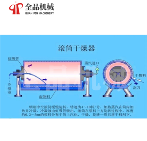滾筒供熱方式便于控制,筒內(nèi)溫度和間壁的傳熱速率能保持相對(duì)穩(wěn)定,使料膜能處于穩(wěn)定傳熱狀態(tài)下干燥,產(chǎn)品的質(zhì)量可獲得保證。